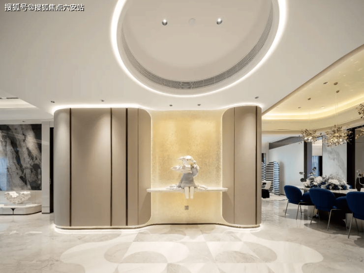 潮观凤起由国际知名设计团队联袂打造,包括大师设计团队。整体设计采用经典的ART DECO艺术风格,融合现代简约线条与复古摩登元素。