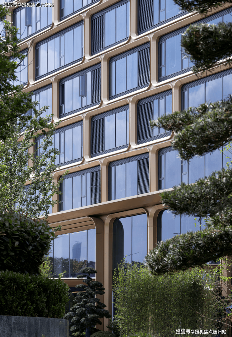 由亚洲建筑师协会金奖得主孟凡浩及其团队line+建筑事务所操刀,从钱塘江“潮涌”中提取设计灵感,外立面采用金色铝板曲面线条与大尺度玻璃幕墙,塑造如江水流动般的建筑韵律。