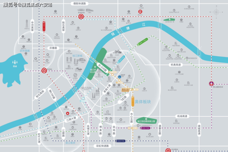 交通网络:TOD4.0模式无缝衔接地铁2号线飞虹路站,规划R6/R7/R11三线环绕,5分钟经跨江隧道(庆春/博奥/望江隧道)直达钱江新城。通城高架、市心北路等主干道构建15分钟城市生活圈。