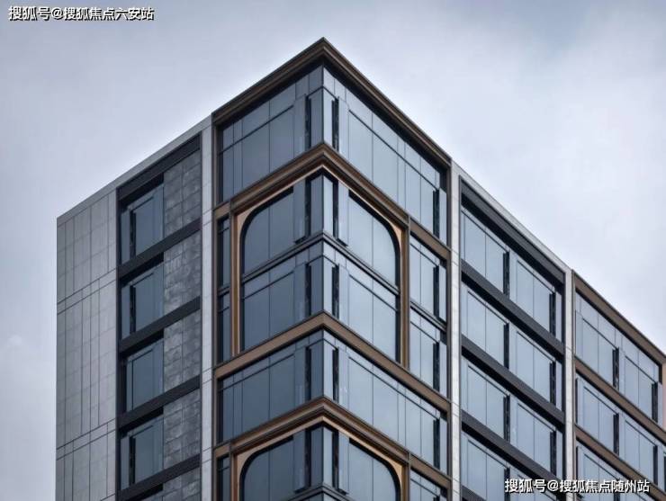 铝板、大面积玻璃与金属框线组成了璞云东方的“第一眼心动”,尤其是工艺精巧又极为吸睛的R角金属线框,犹如一道金色飞虹,让人一眼难忘。