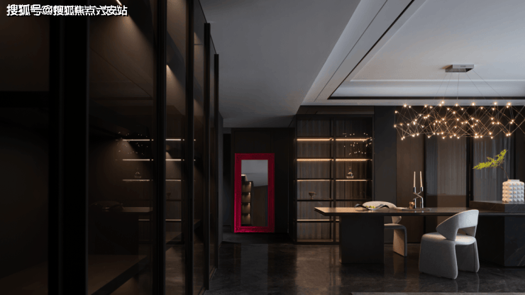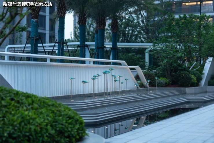 除了尺度感,臻奥院的归家仪式感和园区度假感也被“拉满”。回到小区,首先映入眼帘的是一片星光雨帘,水系前的雕塑,是一个醒目的“ONE”,在夜间尤其熠熠生辉,似乎提醒着业主,全城瞩目的两个“ONE”,在这里完成了时代的接力。
