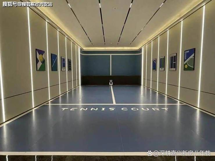 园区内配有下沉式庭院和会所,会所内设置了多个功能空间,除了健身房、瑜伽室、恒温泳池这些空间外,咏舟府还做了一个网球室,对运动爱好者十分友好。