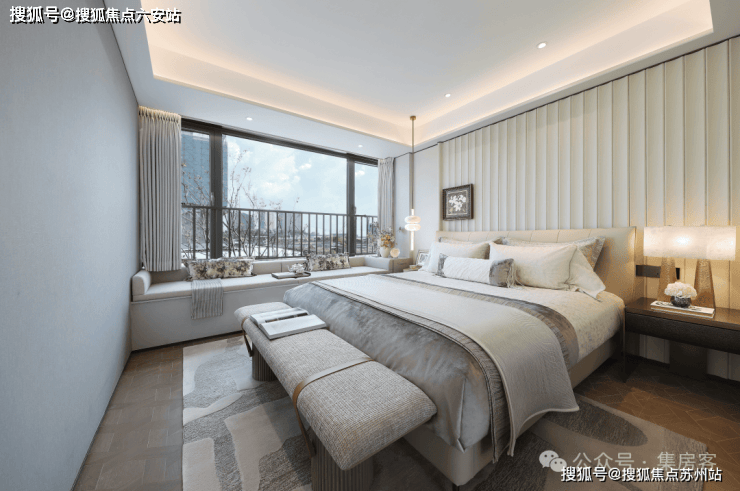 主卧以酒店套房标准,配备独立卫浴、衣帽间与观景飘窗,是二人世界的专属领域;