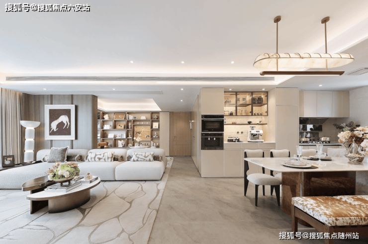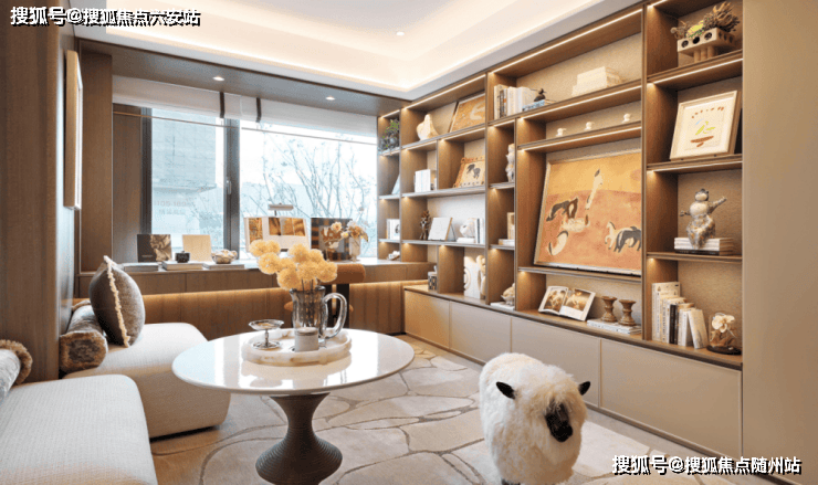 客厅背景墙的吊柜与储物格,展示柜的灯带与玻璃门,为收藏的Labubu提供了最佳舞台。这种“情绪收纳”的逻辑,让每一件物品都找到归属,也让生活回归纯粹。