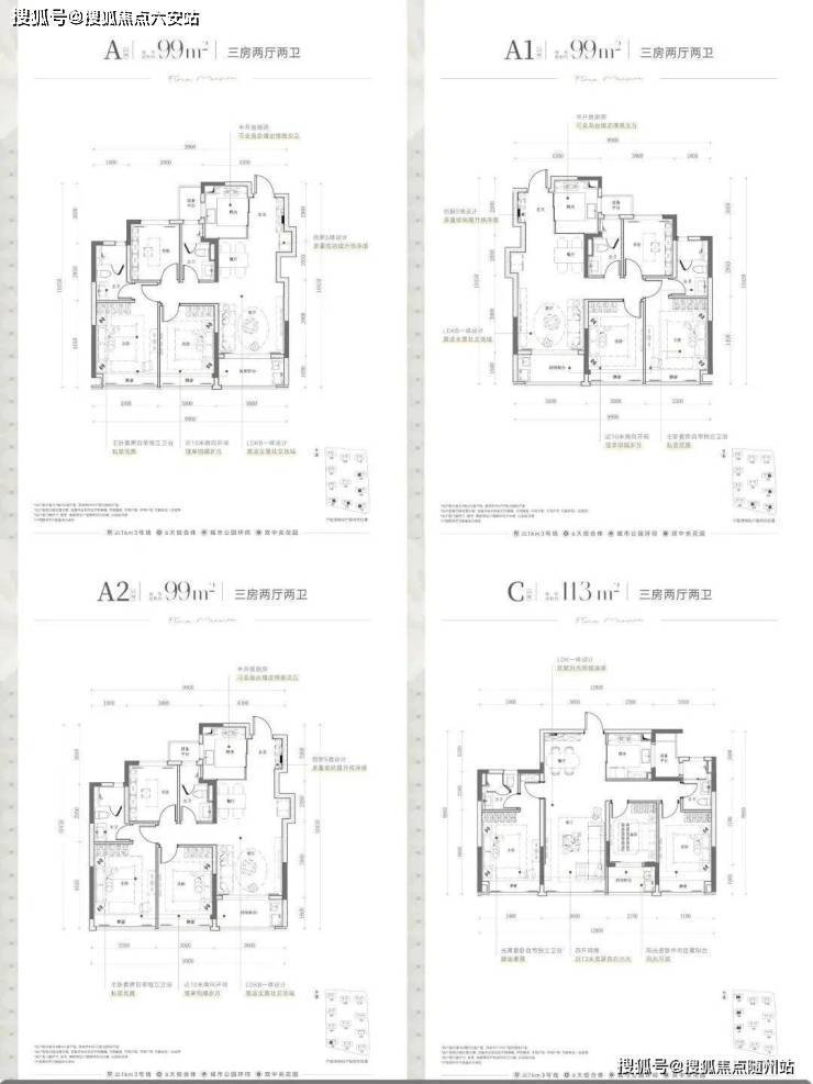 建面约99㎡的三房两卫户型,动静分区,采用三开间朝南设计。建面约113㎡的三房两厅两卫户型,四开间朝南,拥有封闭式阳台,南向采光充足,使得整体空间更加宽敞明亮。🔻售楼热线:☎ 400 832 8823「售楼处」☎〢网上售楼中心〢🔻