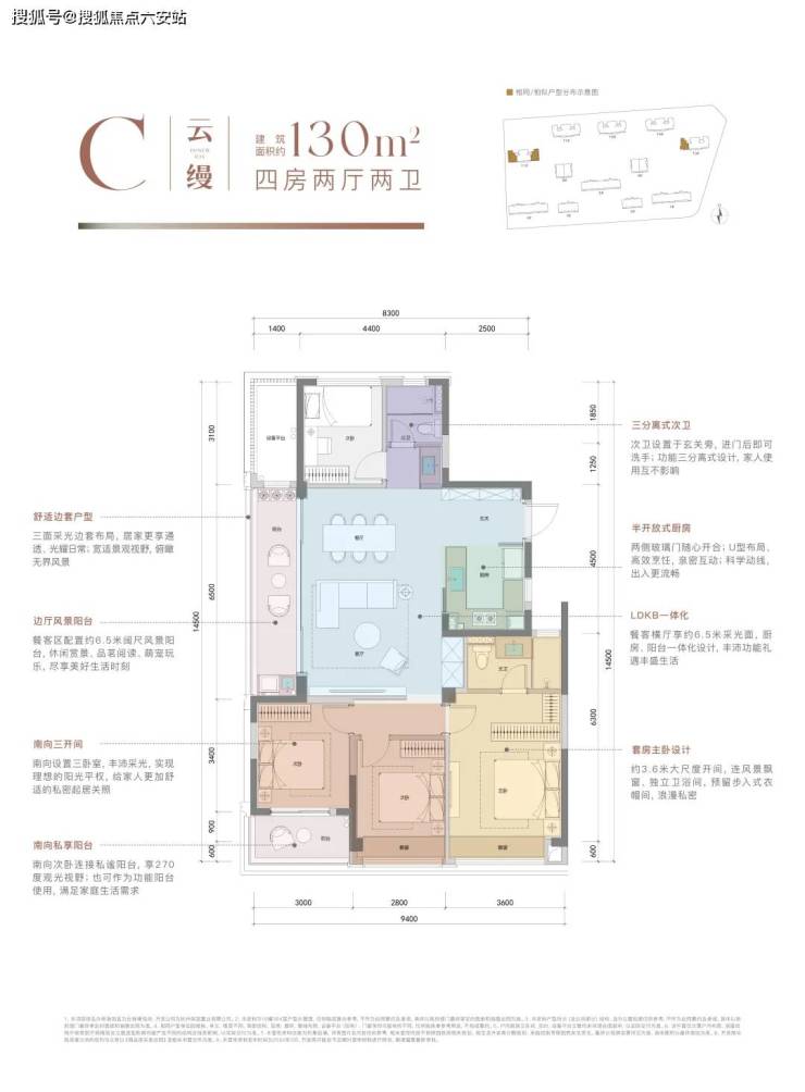 约130㎡C户型,约6.5米餐客横厅、客&卧双阳台、三卧朝南、独立门厅,品质改善。