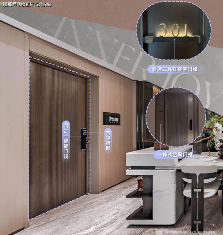 一体式金属门框、酒店式亮灯镂空门牌,仿木纹设计入户门,归家格调拉满。