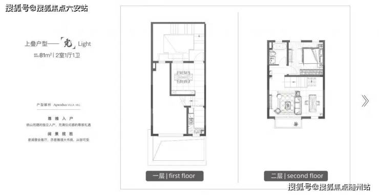 建面约81m²两室一厅一卫上叠,打造湖景客厅、主卧,以及可变空间,将实用度与舒适感平衡得恰到好处,亦设计有屋顶露台,是众多度假型、艺术工作者的心动选项;