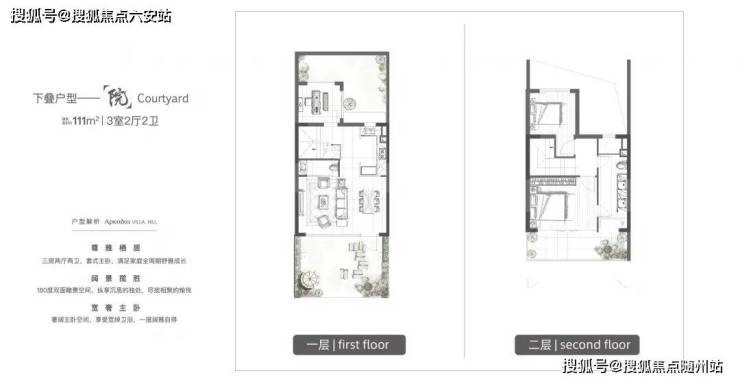 建面约111m²三室两厅两卫下叠,打造180°双面瞰景空间,约20 m²南向入户花园,作为聚会茶区,闲暇时可与朋友喝茶品花,北面的花园,将承载更多生活意趣。2楼设计了尊崇主卧套房,独立卫浴,营造优雅私密的起居空间,更打造生活功能露台,无论是瑜伽或是晾晒等生活需求,都能满足。