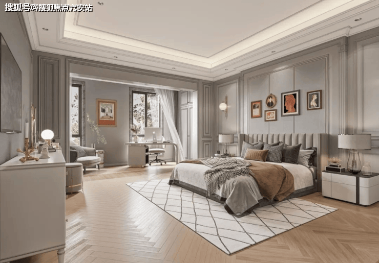 项目采用经典的三段式立面设计,融合了中国传统院落布局与法国枫丹白露宫的审美理念。天然浅米黄石材、坡屋顶、老虎窗等法式建筑经典元素的运用,让整个社区洋溢着浓厚的艺术气息与历史底蕴,成为绿城造墅技艺的集中展示。