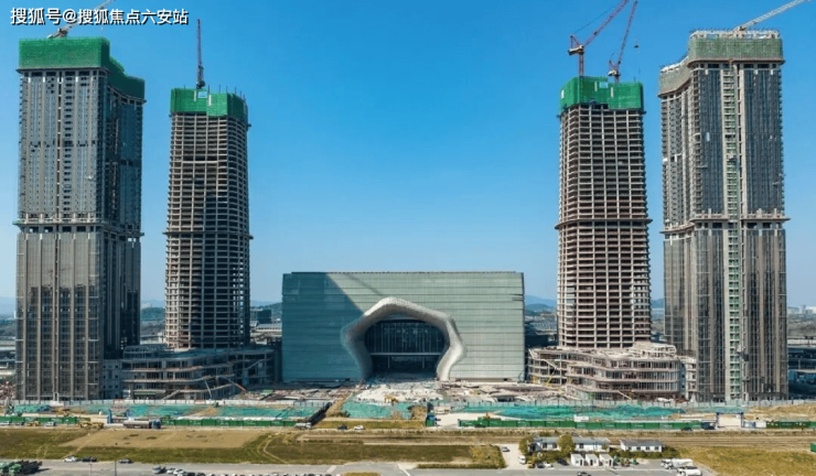 而围绕其两侧的四幢塔楼更是直插云霄:A塔楼设计高度320米,已建至53层:B塔楼高度300米,已建至58层:C、D双塔楼高度均达213米,四幢塔楼齐齐突破200米大关。