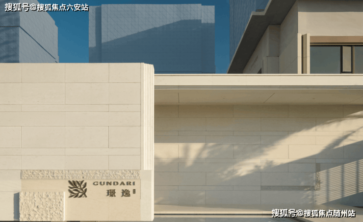 首先整个项目的石材含量特别高,用了大量石材与仿石铝板,强调了它的厚重感。从门头开始,到园区柱廊,璟逸都用了大片的纯色系石材,就像一座隐奢酒店,就连连廊的吊顶,都全是同色莱姆石。