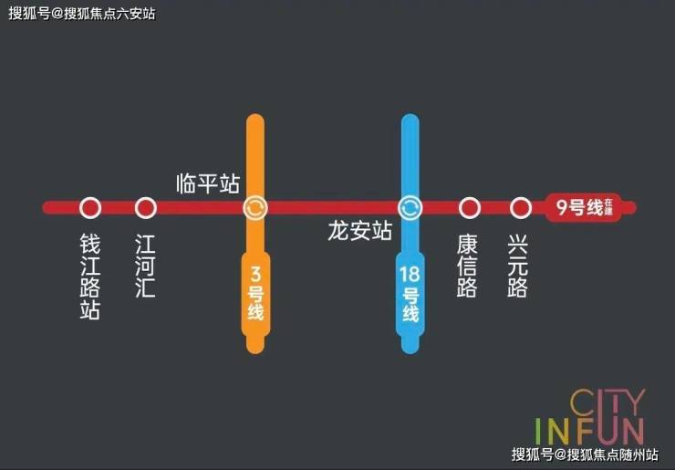 项目横跨地铁9号线兴元路站(在建)、康信路站(在建)两大站点,以轨道打破壁垒,一条地铁直达钱江新城、城东新城、滨江、西湖等高能区域,更高效的日常通勤外,还能享受到一脉市心的生活配套。