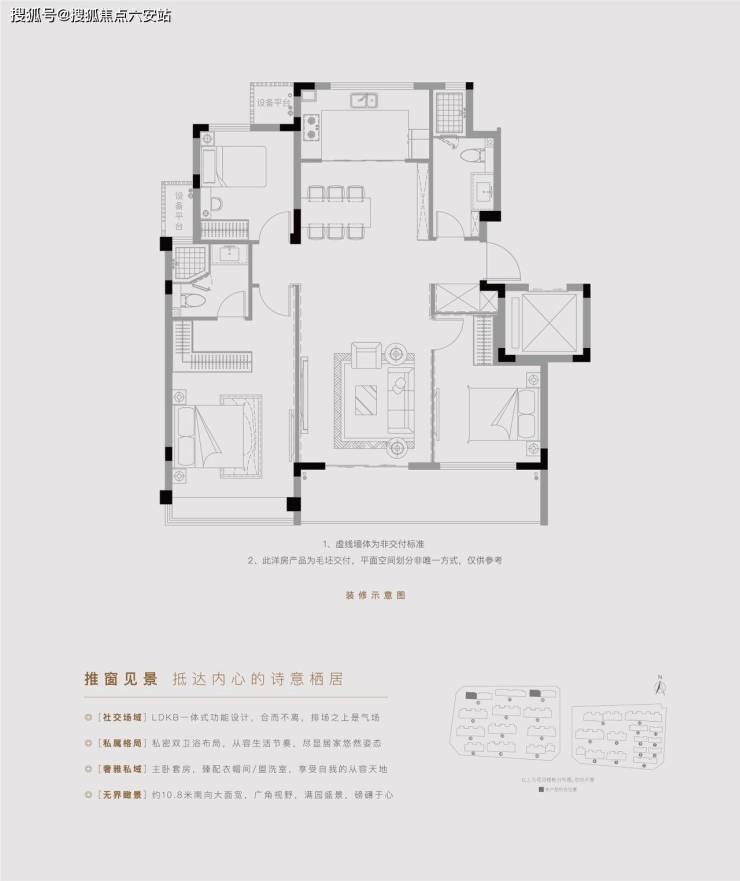 独门独院,超大庭院,天人合一的居住境界;三层合院,一层一世界,盛载家族生活;L型空中大阳台,纵览天地的雄壮胸襟;澄心合院仅此17席,无以复制的城心孤品。
