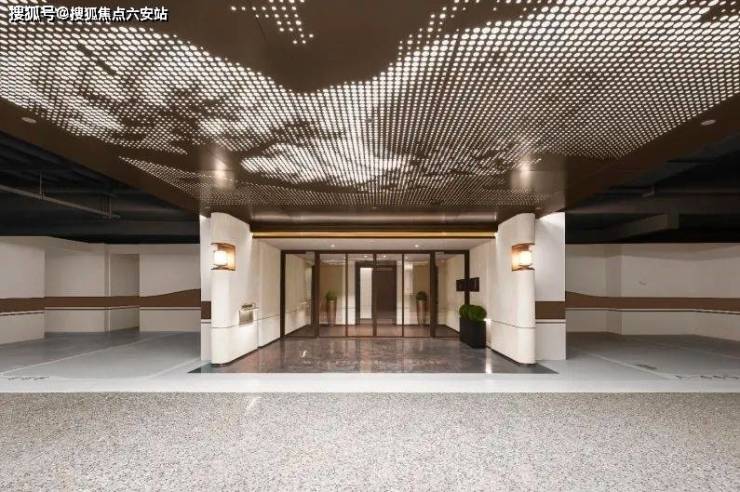 公区设计:公区已经实景呈现,进入公区首先看到的是长约40米的恢弘大门,用了大半年时间打磨而成。大门两旁铺装了大片的Prada绿奢石,使用金属线条包边,简约中又显高贵。整个园区还散落着超40多块大大小小的黑山石,也是一大景观亮点。