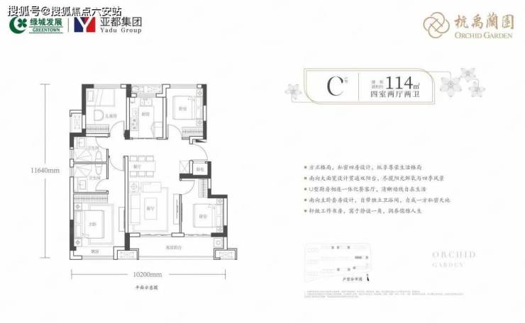 114㎡户型:四房两厅两卫,约93套。