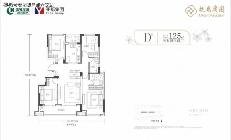 125㎡户型:四房两厅两卫,约120套。