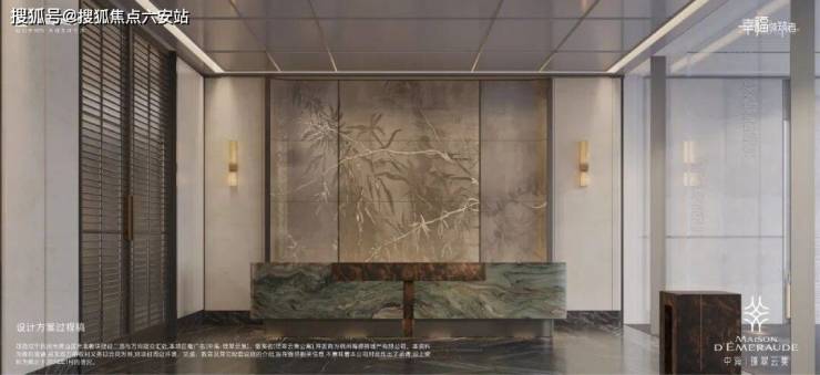 为了实现尊贵雅致的归家仪式感,打造“五境归家”动线,约37米延展面的府院式大门、约4米挑檐星空顶及尊贵酒店式落客和parda绿奢石,勾勒出每一步皆静奢的归家质感。而在入户电梯厅,经典纹样的瓷砖拼花,搭配雪山银狐岩板和精美壁灯,让业主的每次回家都被温馨氛围包裹。