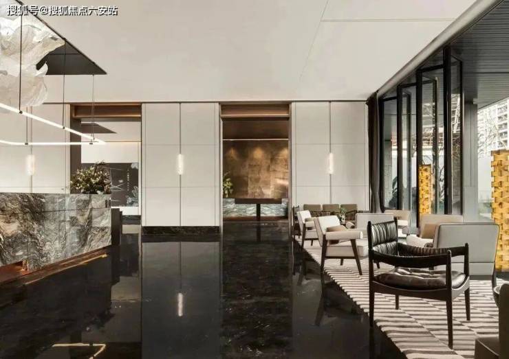 在建筑上,强调对称,突出轴线,充分传达了建筑自然、挺拔的气质。以极简的形态、“消隐”的立面设计,再配以整体平和舒缓、自然雅致的色调,呈现出不同于传统建筑的轻盈、通透质感,展现对美学的高度追求。外立面采用大面积玻璃镶嵌金属线条等现代元素,整体为银灰色系,有强烈的对称和秩序感,高级感拉满。