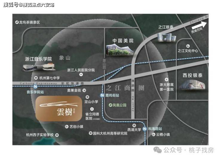 更值得关注的是交通网络:双隧道(紫之隧道串联城西,之江路隧道直达钱江新城,预计2024年开通)、双地铁(6号线音乐学院站即达,规划12号线美院象山站一站换乘),无论去滨江、奥体还是武林广场,都能快速通达。无论是日常通勤还是周末出游,这里的“出行自由度”远超传统山居项目。