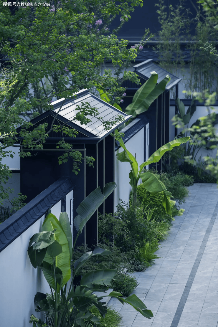 以《千里江山图》为灵感,通过长桥、叠石、竹径等元素营造“画中游”意境。建筑顺应6米台地高差布局,强调阳台、露台等灰空间设计,沿溪面最大敞开,实现“远观近赏,移步换景”。