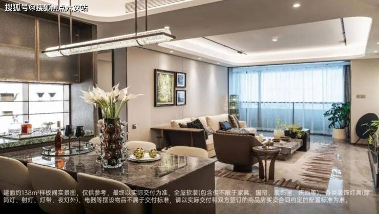 建面约128㎡样板间实景图,受光线、拍摄技术等影响,可能存在色差等,仅供参考,最终以实际交付为准,全屋软装(包含但不限于家具、窗帘、装饰画、床品等)、各类装饰灯具(除筒灯、射灯、灯带、夜灯外)、电器等摆设物品不属于交付标准,请以实际交付和双方签订的商品房买卖合同约定的配置标准为准。