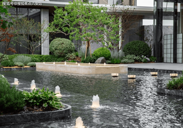 走进项目的实景示范区,阳光透过藏溪组团的朴树林,在素墙山石间洒落斑驳光影,驻足在天青景观戏水池的边上,欣赏着阳光折射出的流光溢彩的湖面倒影。