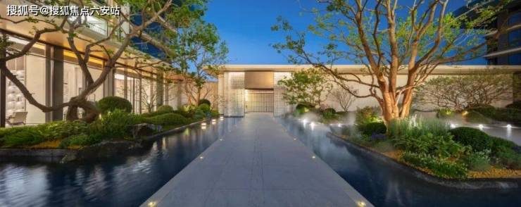 玉湖之星传承千年的玉润文脉,在材料动用上,突出玉、白、润、贵的格调,从钟鸣显赫的主入口,到泛会所、下沉式庭院、背景墙,大量选用贝金米黄石材、海浪灰花岗岩、水纹玻璃等景观材料,而且用了大量复杂的弧形和拉槽工艺,和立面相呼应。