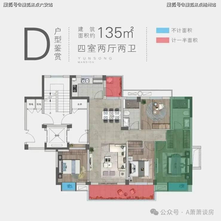 云颂府建面约135㎡“可成长”人气户型,满足全周期居住需求