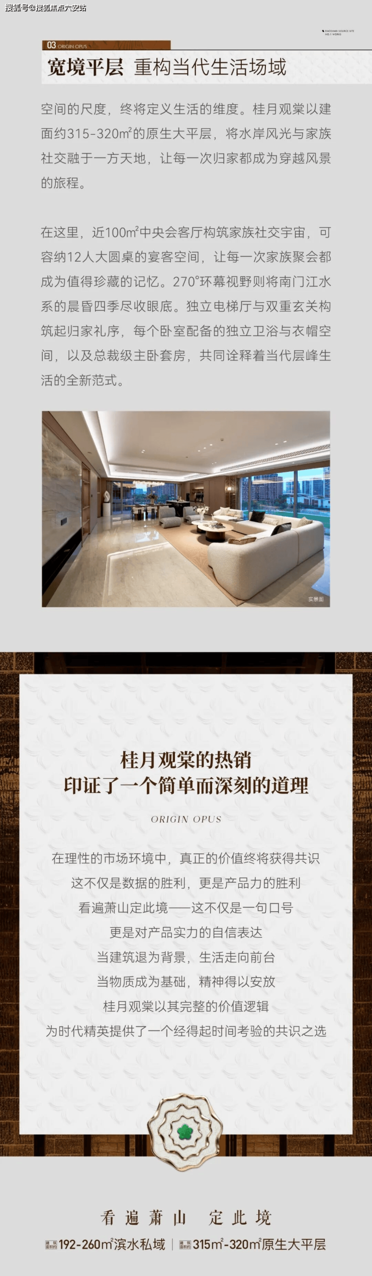 ▰▰ 杭州萧山区 桂月观棠 原生大平层 | 萧山源址壹号作品 火热销售中 ▰▰ 在杭州萧山南部新城核芯区域,一座三面环水的半岛式生态绿洲正静静崛起——桂月观棠,这座被誉为“萧山源址壹号作品”的低密藏品,以约11.3万方的地标恒产,集萃高端酒店、原生大平层、滨水排屋于一体,重新定义了城市引领者的未来之境。项目总占地面积约2.2万㎡,总建筑面积约11万㎡,仅规划172席稀缺房源,其中原生大平层129席,滨水排屋43席,打造出真正意义上的纯粹高净值圈层社区。