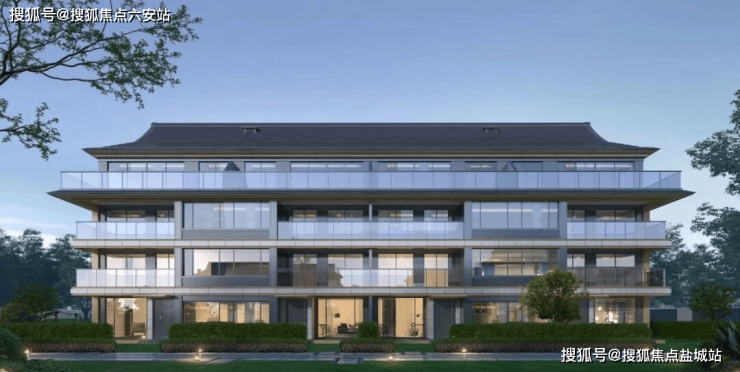 2、【外立面】四面铝板+lowe玻璃立面,搭配局部爱马仕灰和蓝眼睛石材,与坡屋顶的结合,沿袭传统宋式山水美学,写意现代东方气韵风华,。
