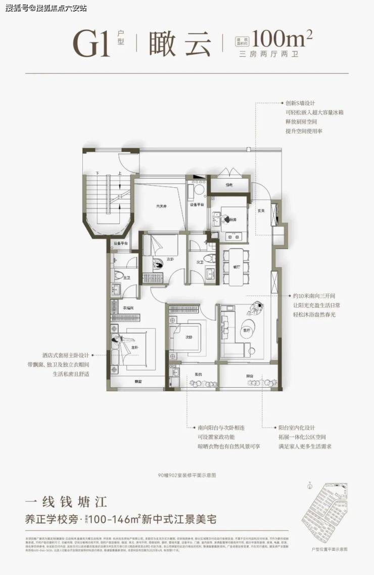 建面约100-146方宽宅,最大化瞰江、景观、采光、通风等,不仅尺度奢适,而且总价可控。