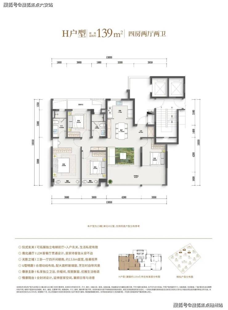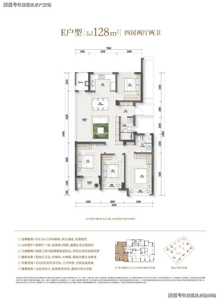 如果预算再多一点,家里人多一点,建面约128㎡边套四房户型,同样也是边厅户型,空间更大,功能性更强,总价相比市面上的139㎡还是亲民了许多。此外,作为板块首个封闭式阳台的住宅项目,还是之江首个全屋五重收纳功能柜子全赠送的项目。