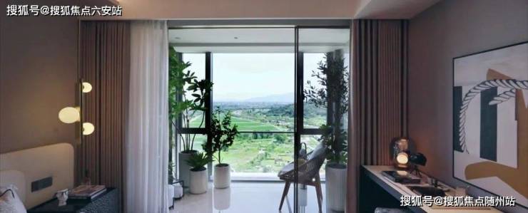 另一侧的次主卧套,设置了内阳台,种满了绿植,竟然还养了个小水族馆,谁说生活不能有些闲情逸致的点缀呢。室内外的绿意融为一体,阳台不是绿色的边界,因为山在那里。
