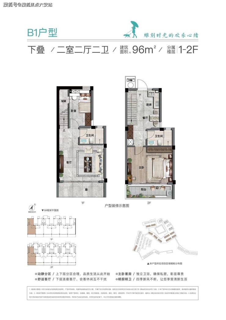 96平下叠2室2厅2卫,上下层分区合理,明厨明卫,四季新风不断。