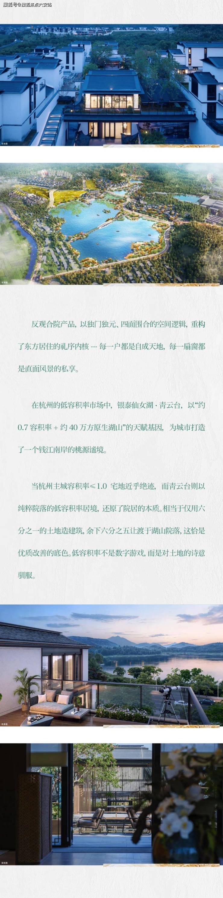 ▰▰ 萧山区 银泰仙女湖|青云台 ▰▰在杭州,每一席国风合院的出现,无不洛阳纸贵。毕竟主城适合低密产品落定的土地已属难得,纯低密合院住区更犹如“孤本珍藏”。
