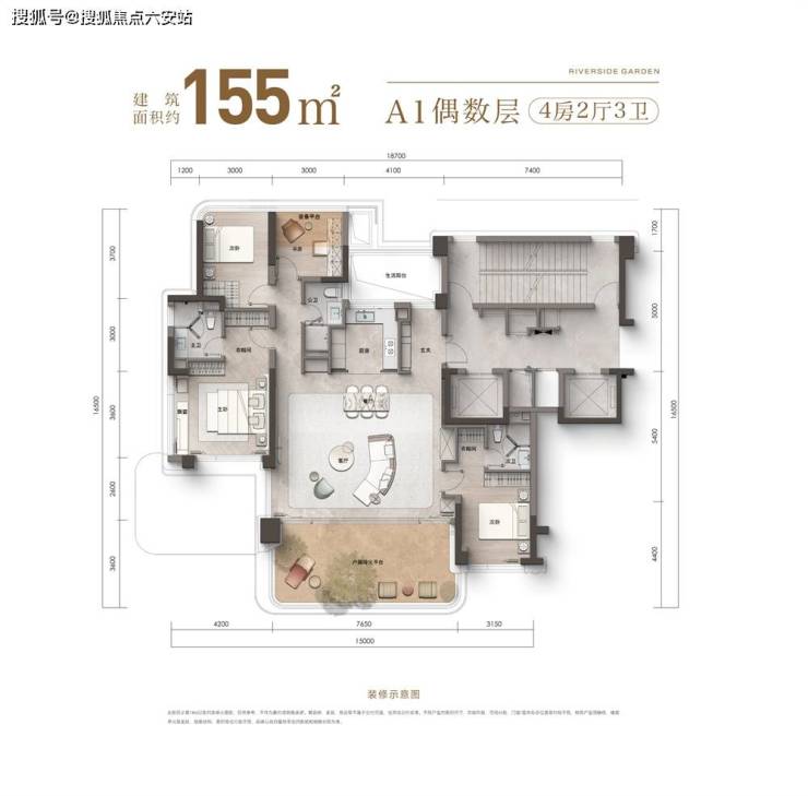 建面约153-175㎡(四房三卫/五房三卫)