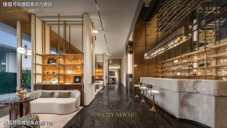 在建筑立面上,宸岸新月拿出了远超周边项目的美学观感,汲取现代轻奢法式的白金美学灵感,铝板金属线条搭配大面积玻璃,打造出光影灵动的对称式金色画框立面,带来了极强的城市封面感。