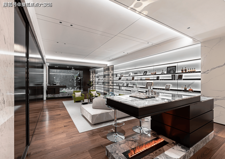 地下室品酒、健身、瑜伽和高尔夫,满足一众个性需求,一楼是餐客厅和独立的书房,冬日升起壁炉,黑胶唱片播放着蔡琴空灵的歌声“是谁,在敲打我窗,是谁,在撩动琴弦”,落地玻璃外骤雨打芭蕉。