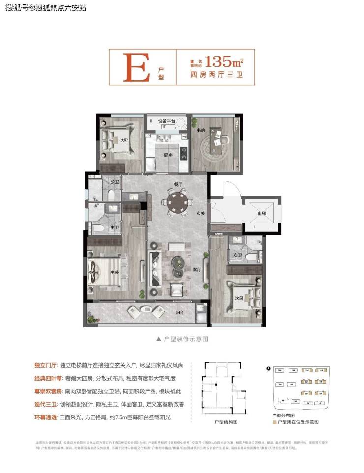 项目共规划10幢7-11层低密洋房,主力建面约110-140㎡舒阔户型,其中140方内户型创领性做到“双套房三卫生间”,更是富春街道唯一拥有“星空露台”的洋房产品,无可复刻。