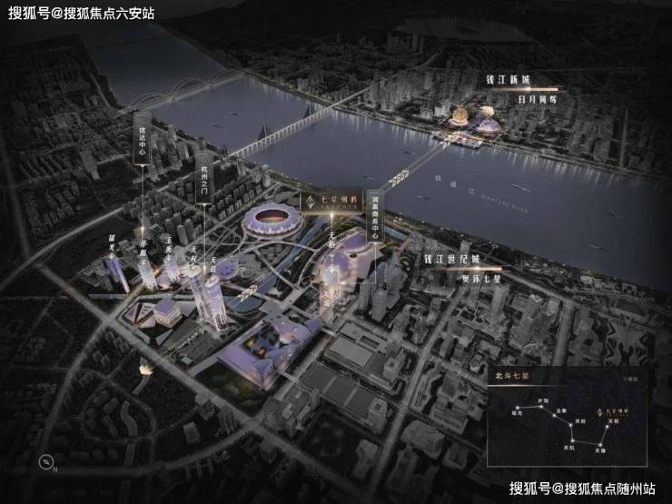 七星潮鸣占据杭州新世纪中轴线的关键位置——连接“武林中心-市民中心-奥体中心”的城市发展主轴。这一轴线汇聚了杭州的行政、金融与体育资源,成为城市未来30年发展的核心脉络。