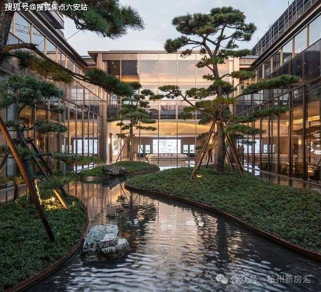 春棠雅韵府深谙宋式造园精髓,取意千古名画,将层峦叠嶂、曲水流觞、飞瀑激湍、临水亭榭、苍翠修竹等意象精妙提炼,并依托杭州得天独厚的自然与人文底蕴,运用现代设计语汇,擘绘出一幅立体的、可游可赏的“宋韵山水图”,将山水真意糅融于步履之间。