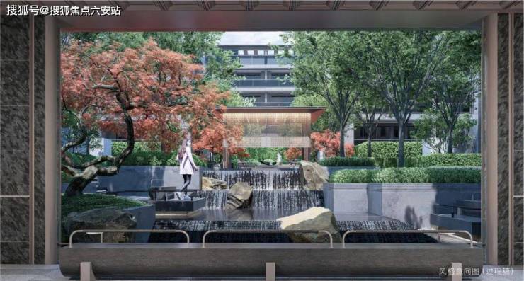 如今从小区正门的独立高端会所进入园区后,项目特意做了退进式梯度入口,中心引入意式跌水水景;从两侧围着水景、顺着山势的缓坡台阶漫步向上,在跌水的终端式卡洛斯卡帕式的雕塑出水口和一株大型乔木作纪念性空间。