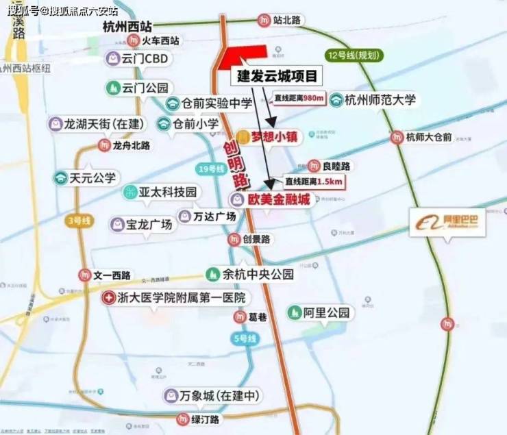 高铁出行:杭州西站距离项目直线距离仅约800米