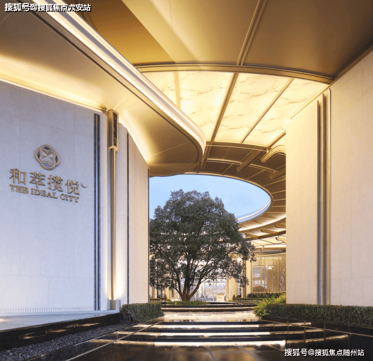 步入门庭,映入眼帘的是由11根高5米多的弧形立柱构成的壮阔空间。这些立柱巧妙环绕,撑起了一个宏伟的藻井,其吊顶采用了精致的透光云石,彰显非凡的气派与匠心独运的设计。中心一棵古桂挺拔繁茂,恭候业主荣耀归府。