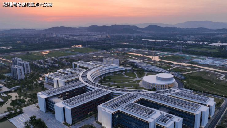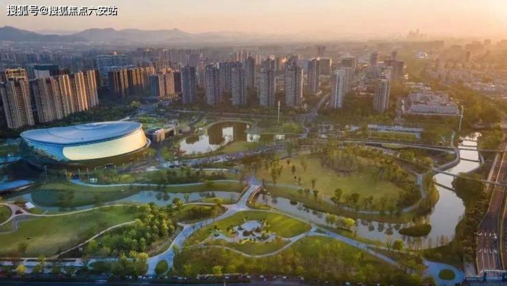 建筑顶层可纵览亚运公园全景,曲棍球馆“江南油纸伞”造型与国球中心“良渚玉琮”意象形成独特城市景观带。