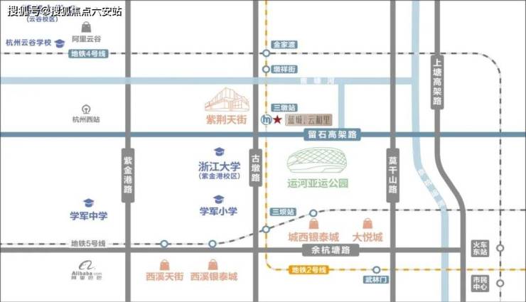 项目地址:西湖区古墩路,位于地铁2号线三墩站D口上盖,交通便利