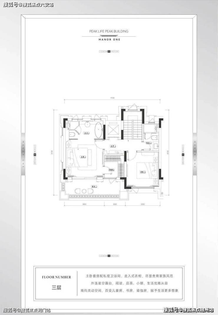 二三楼可以设计为次卧+次卫+超大套房的功能布局。套房中,放得下浴缸的卫生间和走入式衣帽间,才是「享受生活」的最佳标准。而南向的景观露台,则是赏花观景、沏茶品茗的私享天地。