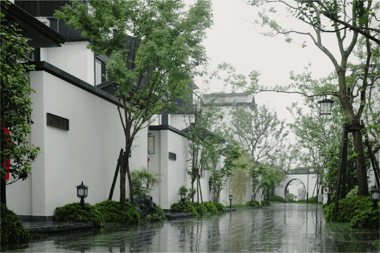 项目为低密宋风院墅,在整体的布局与景观设计上,完美还原了中式建筑的隐逸与审美意境。从各地甄选来的大乔木、黑松、乌桕、夏鹃等名贵植被,以及几乎一年四季都有开放的各类花卉,在静谧悠长的曲径里,共同抒写着中国古典院落的人居情怀。