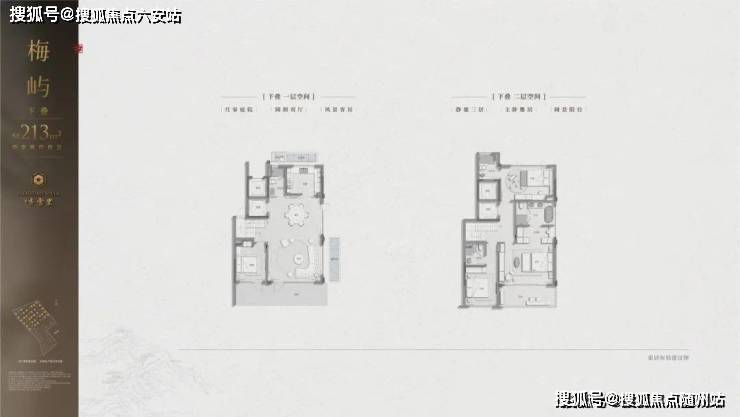 建筑立面:古今交融的诗意表达:外立面以香槟金铝板为基调,搭配蓝眼睛石材与玻璃幕墙,融合传统歇山重檐、纳福悬鱼等元素,既保留宋式建筑的对称美学,又赋予现代建筑的轻盈通透。合院组团采用三面庭院设计,L型景观面与环绕式檐廊,将超山梅影、丁山湖光引入每一扇窗景!